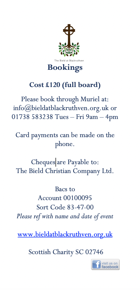 I am giving a short poetry retreat at the Beild at Blackruthven, Perth. It runs from May 18th – 19th entitled a Poet’s Faith details below. It is a wonderful place and it promises to be a rich time.